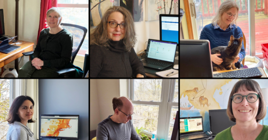 Daniel Sheehan, program head for GIS and Statistical Software Services, describes a recent morning’s work: “I got a couple of economics grad students — one in France — together with a political science grad student to talk over Zoom about redistricting software while getting real-time help from a colleague over Slack. An undergrad needed help accessing the mapping software Arcgis Pro remotely on one of our GIS and Data Lab computers, so I got her going with screen sharing. Then I looked at data via Dropbox from an EAPS grad student in advance of a Zoom meeting he requested. It’s not the same as being on campus in person, but the technology seems to be working well in this strange time.”